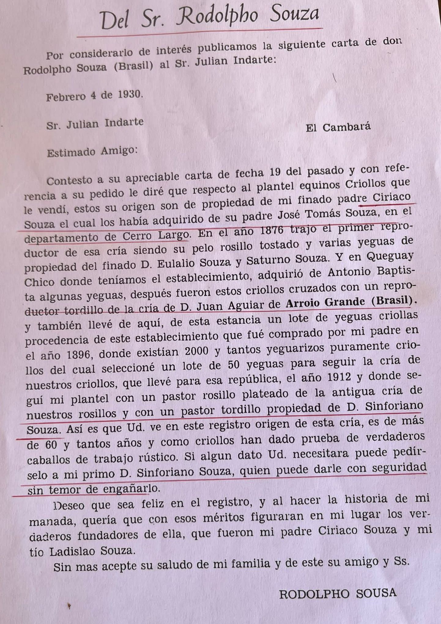 "Essa história iniciou quando meu tataravô Ciriaco Souza,vindo de Paysandu, Uruguai adquiriu a Fazenda do Leão lá pelo final do século XIX ,onde criava gado e cavalos crioulos. Foi enterrado em 1902 ,no cemitério de pedra de nossa família ,que ainda pertence à nossa propriedade."